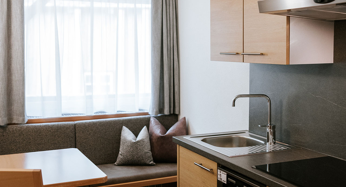 Einfach Füße ausstrecken, Bergluft genießen und abschalten: Das Apartment 22 ist Ihr komfortabler Rückzugsort nach einer ausgedehnten Wanderung oder Skitour. In der gut ausgestatteten Küche mit Sitzecke geben Sie Ihre Kochkünste zum Besten und genießen hausgemachte Kulinarik gemeinsam auf dem Balkon. Für einen Aufpreis gibt’s unser reichhaltiges Frühstück im Tiroler Frühstücksraum. Oder Sie lassen sich backfrische Brötchen direkt an die Apartment-Tür liefern. Einfach einen Tag vorher bei uns bestellen und morgens frisches Brot genießen. Das Apartment 22 in Sölden verbindet heimelige Atmosphäre mit modernen Annehmlichkeiten und eindrucksvollen Panoramen.